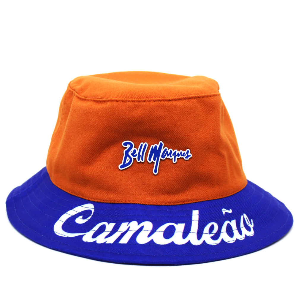 Chapéu Bucket Camaleão Laranja e Azul com pata bordada.